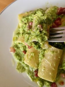 Drizzle with a little extra virgin olive oil and serve your paccheri pasta with broccoli&mint cream immediately.