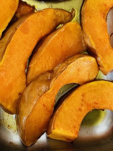 1. Cut the pumpkin into wedges and roast at 190°C / 375°F / Gas 5, until very soft. Let it cool slightly, then scoop out the flesh and mash until smooth. The purée should be thick, not watery.